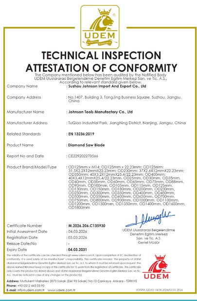 ΚΙΝΑ Johnson Tools Manufactory Co.,Ltd Πιστοποιήσεις