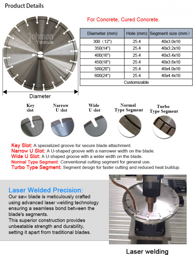2. Πληροφορίες προδιαγραφών του Δίσκου κοπής διαμαντιών 500mm Diamond Turbo Saw Blade για σκυρόδεμα με καλή απόδοση